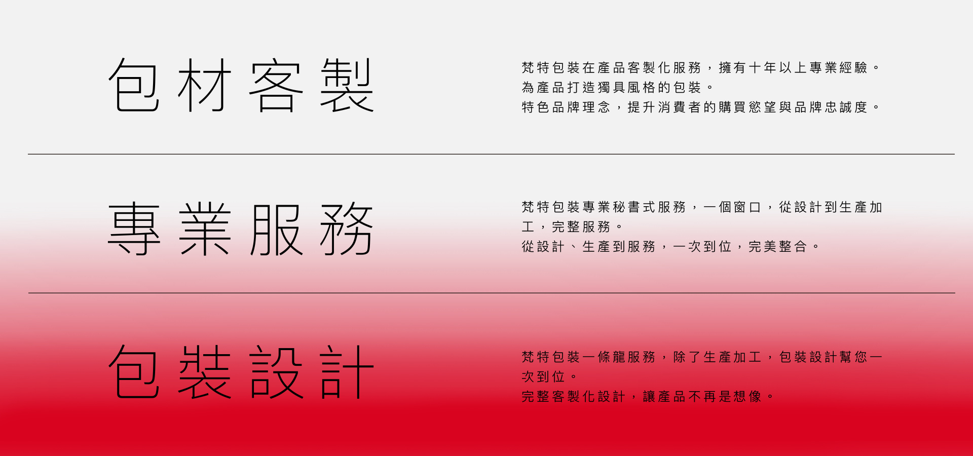 • 梵特國際包裝專注於保養品包材設計與瓶器包裝整合服務,提供從概念發想到量產出貨的一站